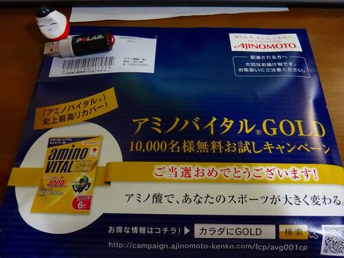 新聞広告をみて、「どうせ当たらんだろう」モードで申し込みました。 何と!当選しました。 アミノバイタルは、大会中に飲んでたので凄く助かる。 早速、今週末のオクムで試してみます!! にほんブログ村 にほんブログ村